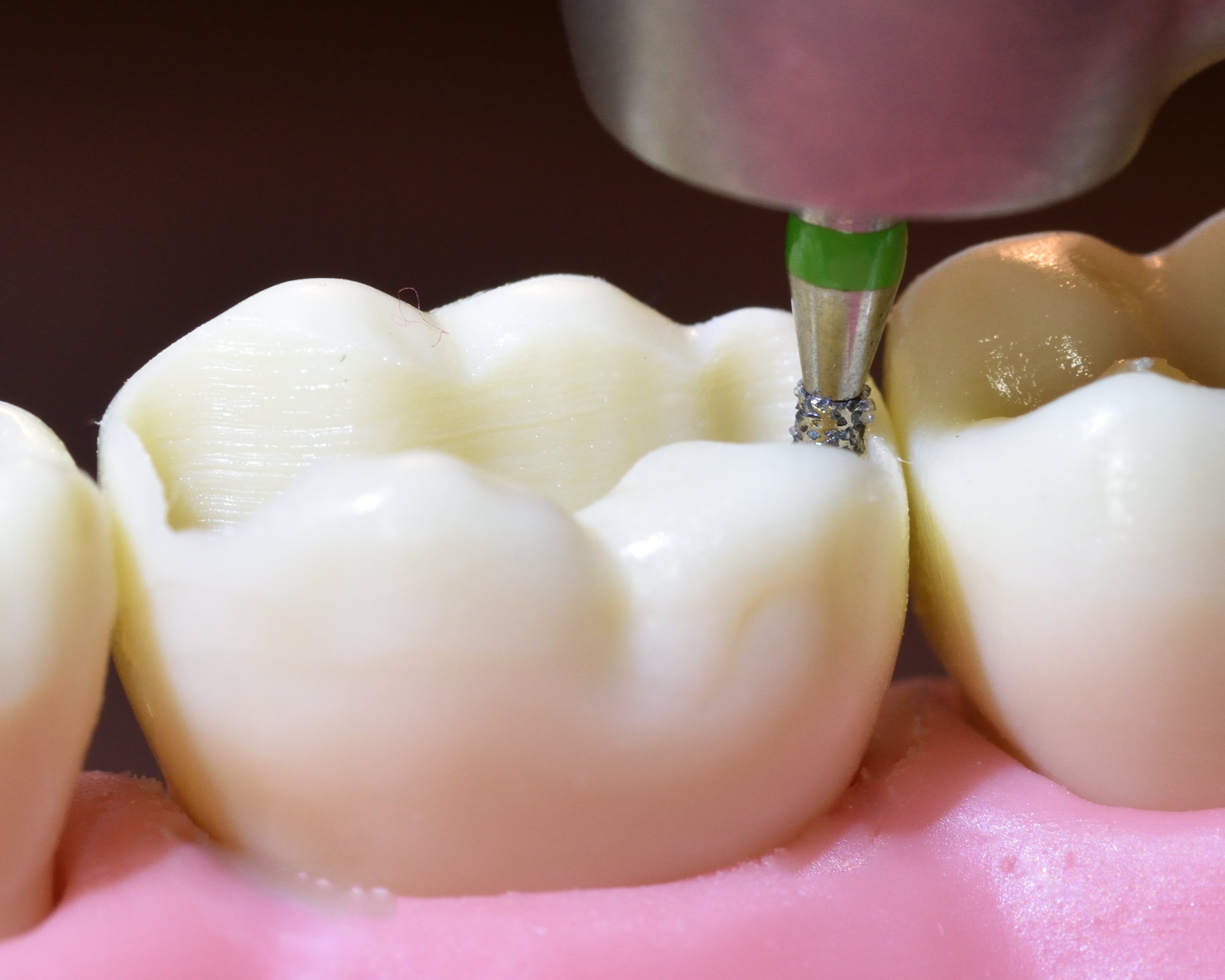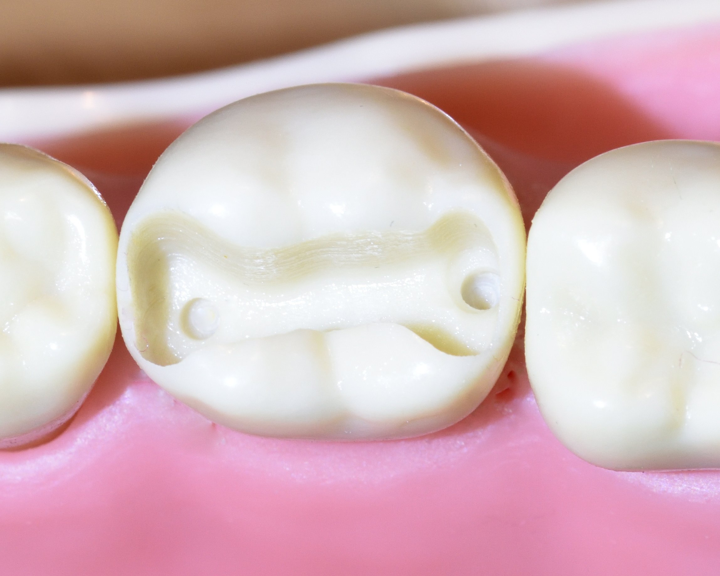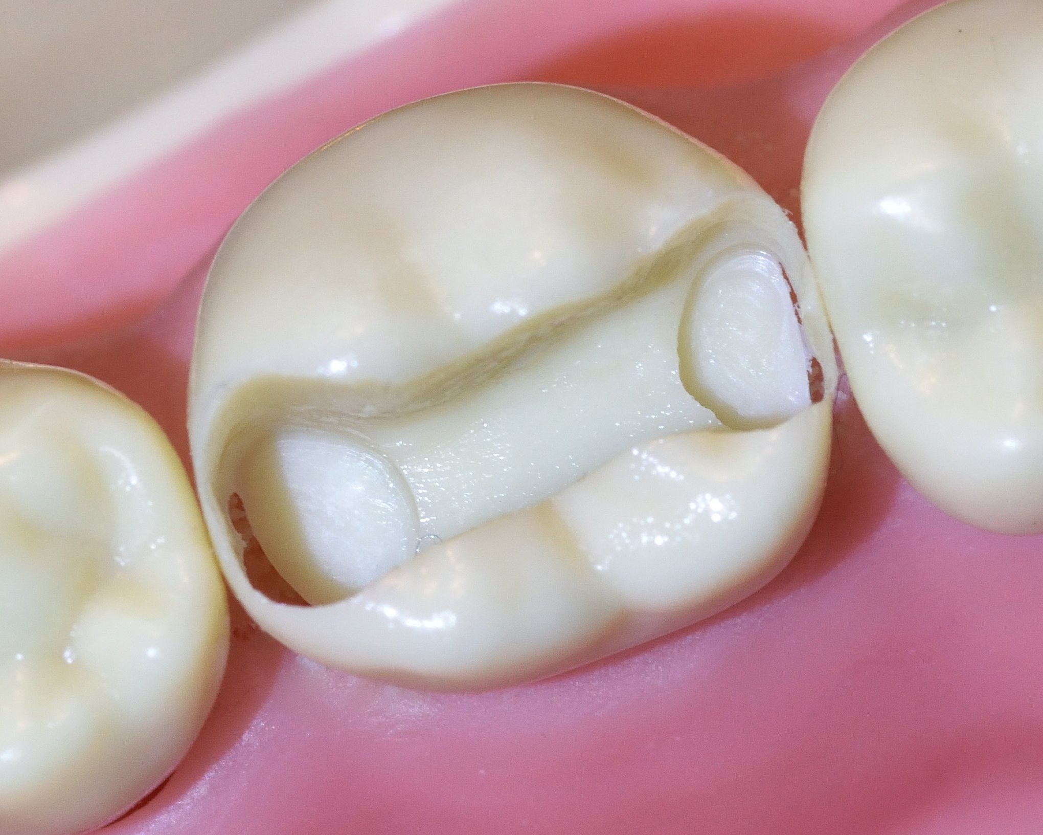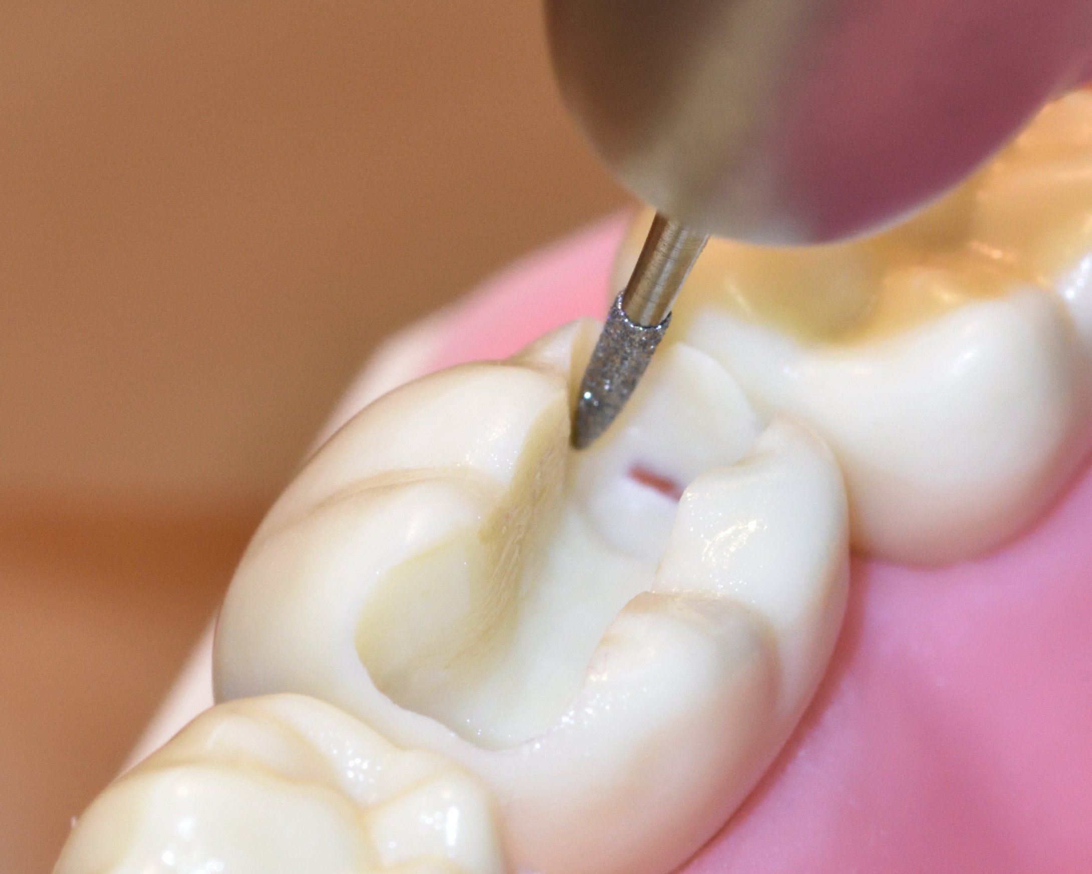 Kavität anlegenDie Optipräp®-Führung sorgt nun für eine Abstützung auf dem Kavitätenboden, die verhindert, dass die einmal gewählte Präparationstiefe unbeabsichtigt verlassen werden kann.