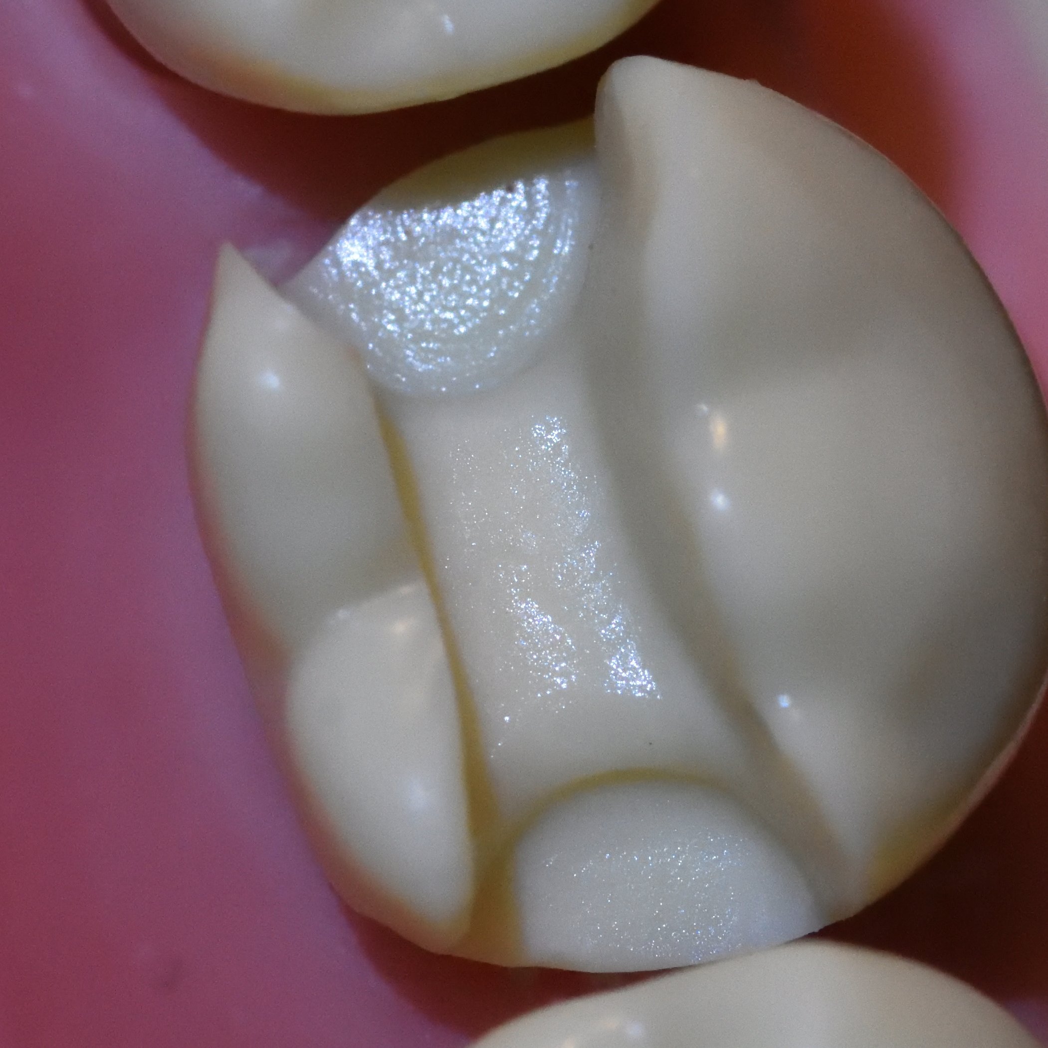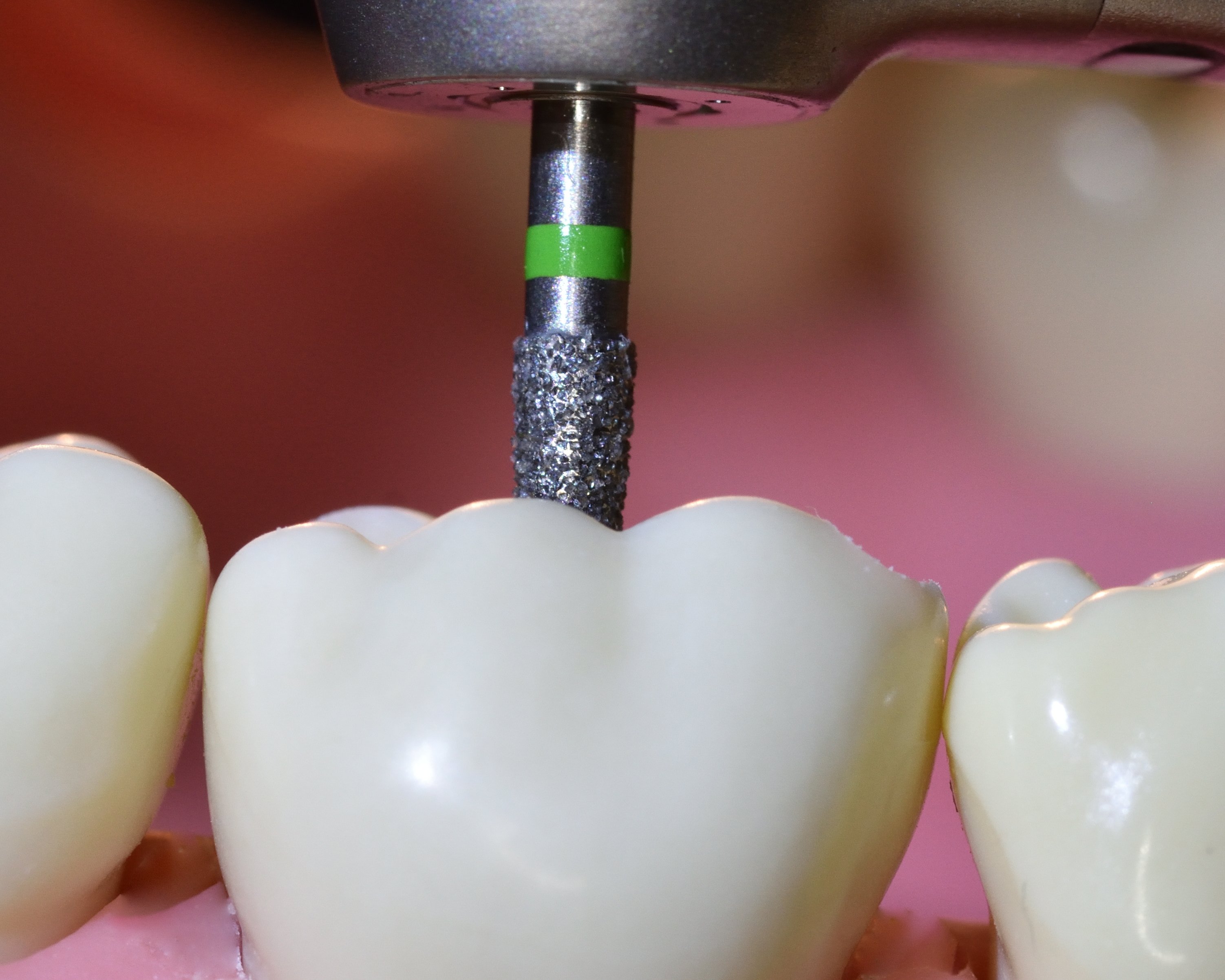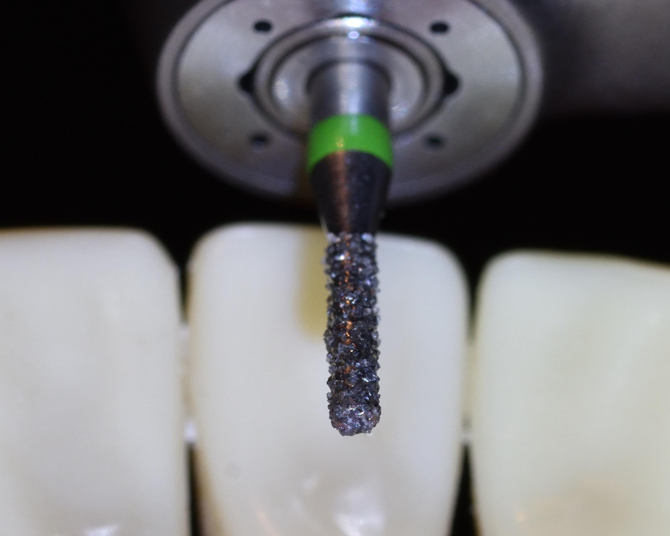 Präparationstiefe festlegen ...Definition der vom Materialhersteller vorgegebenen, unbedingt einzuhaltenden Mindestschichtstärke (in den meisten Fällen ca. 2mm). Das weitere Vorgehen orientiert sich dann an den vorliegenden Defekten.